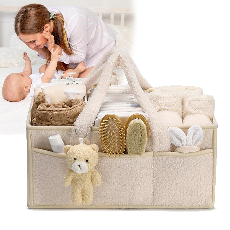 Houd alle babybenodigdheden moeiteloos georganiseerd met onze populaire luxe teddy opbergmand. Deze stijlvolle en praktische organizer combineert een ruim ontwerp met zachte, knuffelbare stof en past perfect in elke babykamer. Ideaal voor luiers, verzorgingsproducten, kleding en speelgoed!